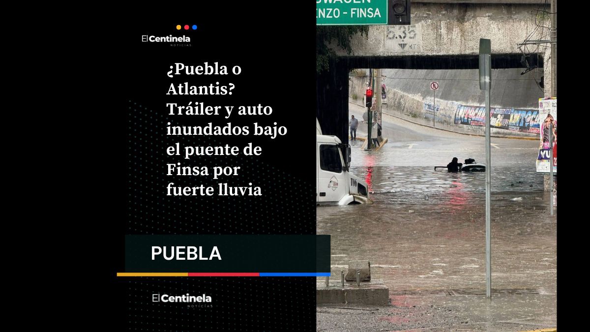 Una fuerte lluvia en Puebla provocó una inundación bajo el puente de Finsa, donde un tráiler y un automóvil quedaron atrapados, no se reportaron heridos, pero autoridades piden precaución.